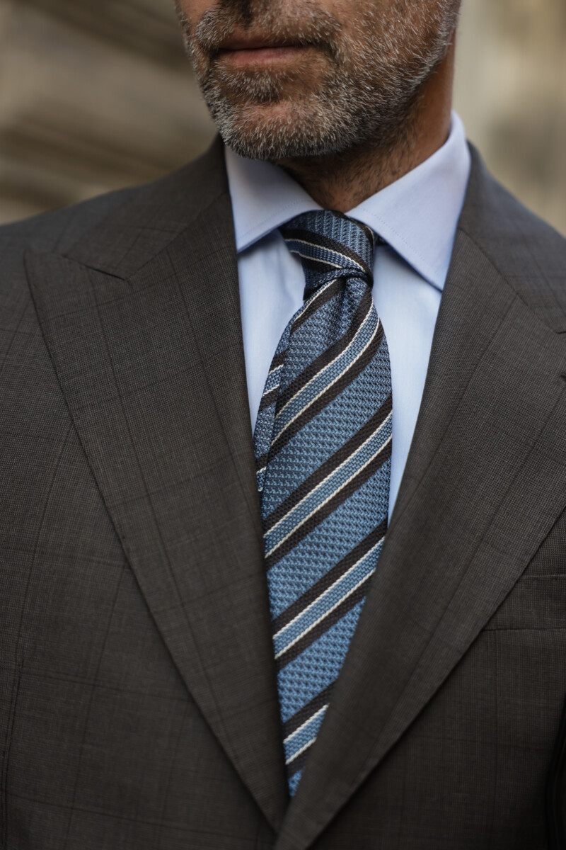 Çizgili Açık Gri Kruvaze Takım Elbise