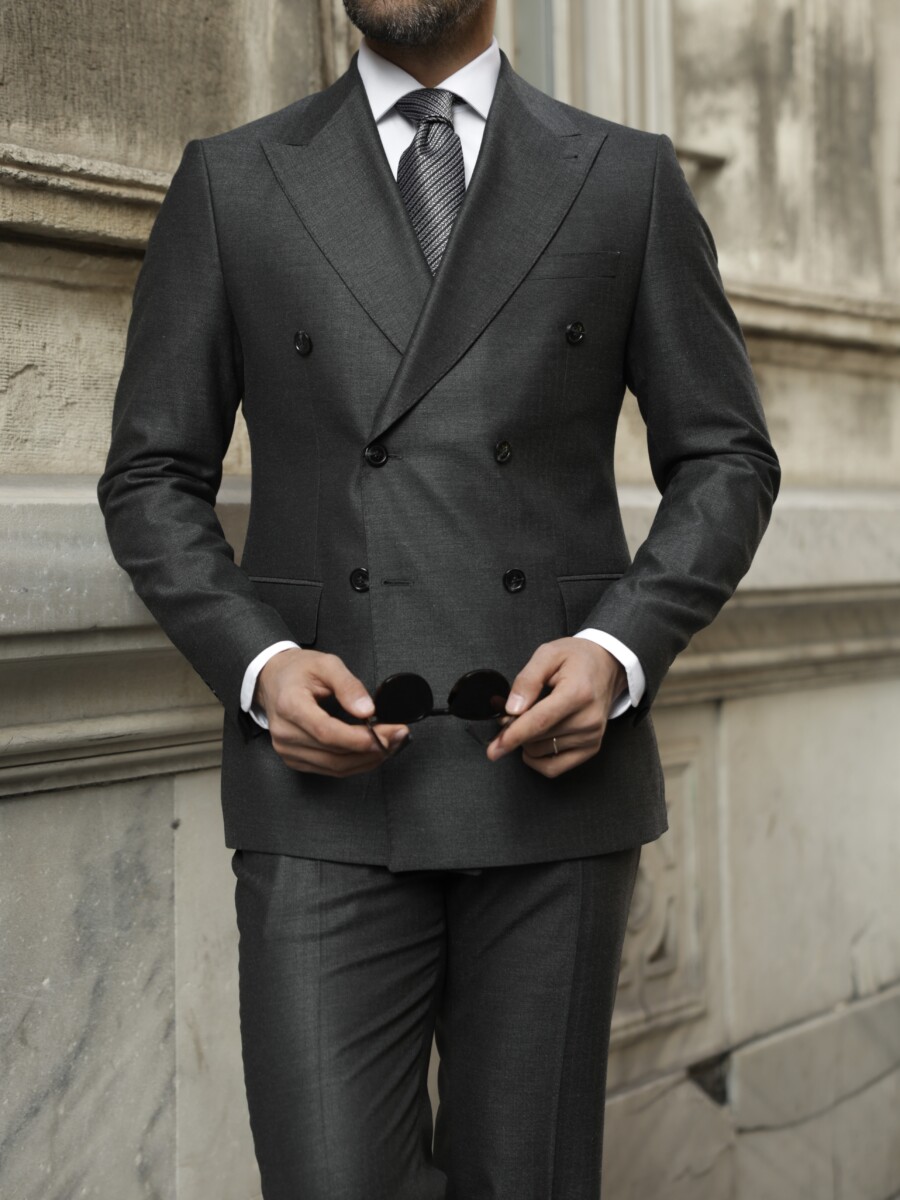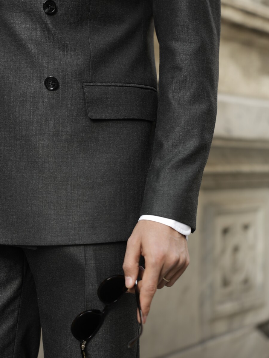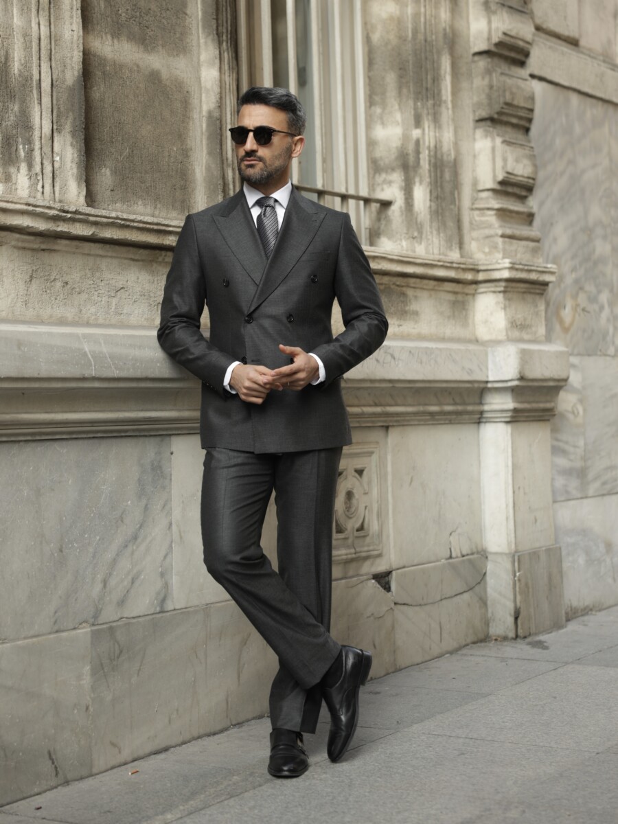 Antrasit Gri Oxford Kruvaze Takım Elbise