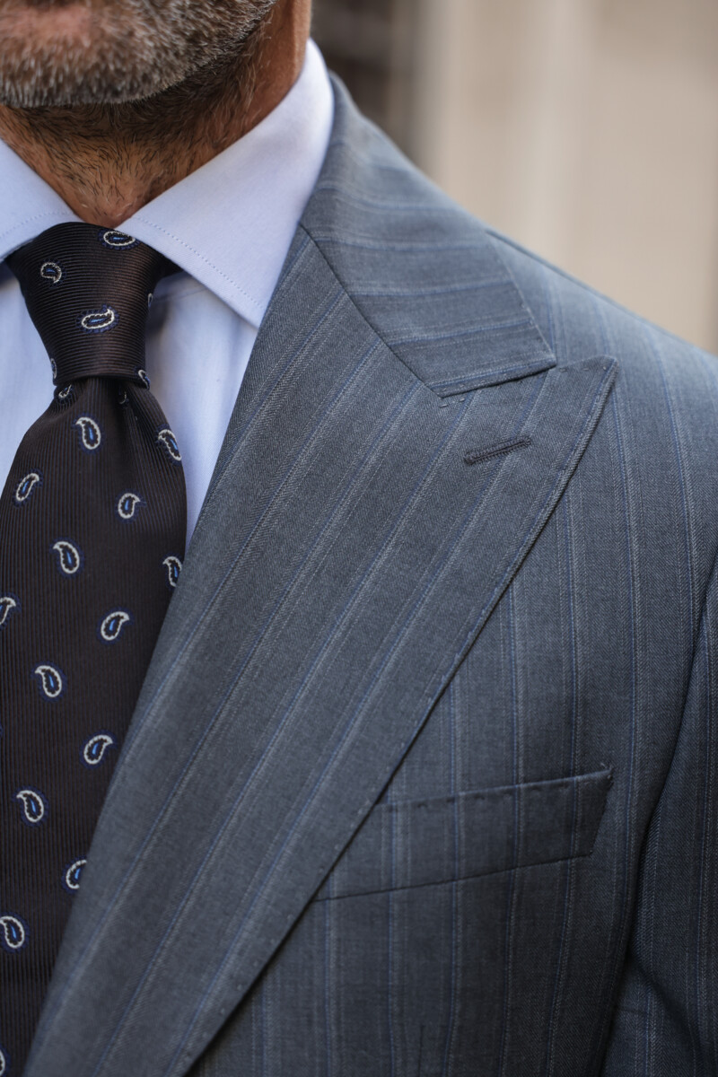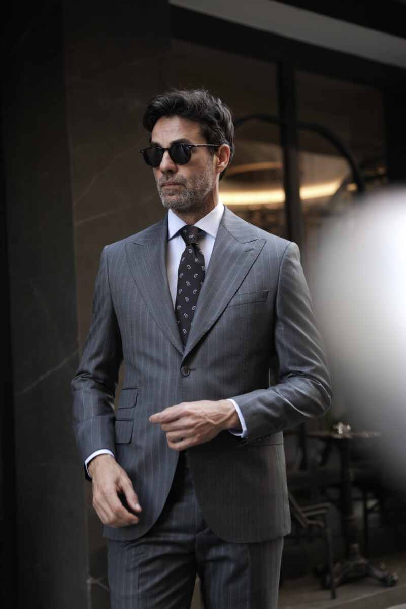 Çizgili Gri Blazer Takım Elbise (7) - 0
