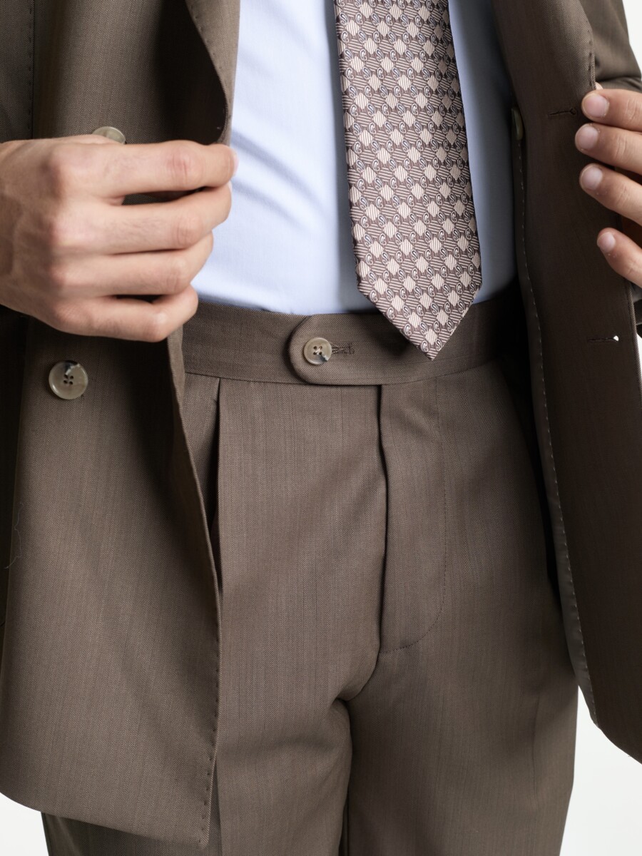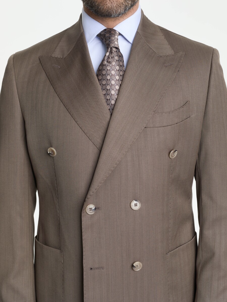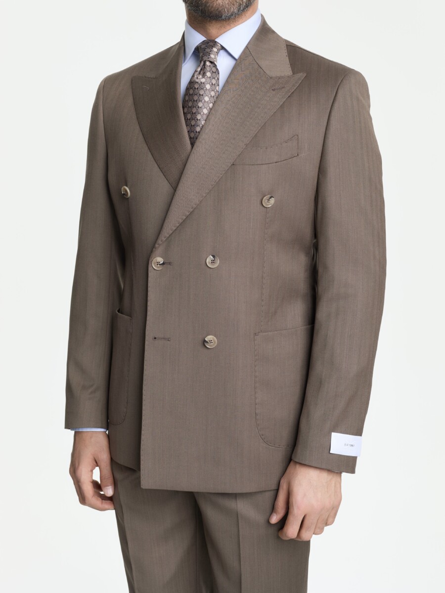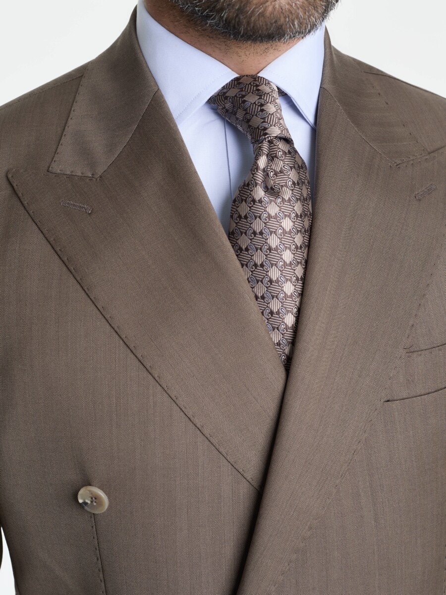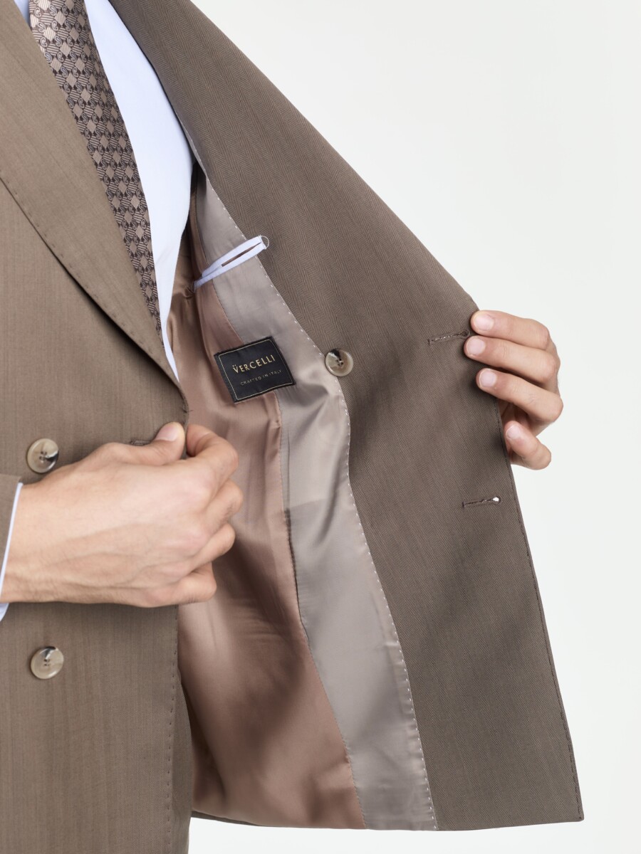 Kahverengi Balıksırtı Vercelli Kruvaze Takım Elbise