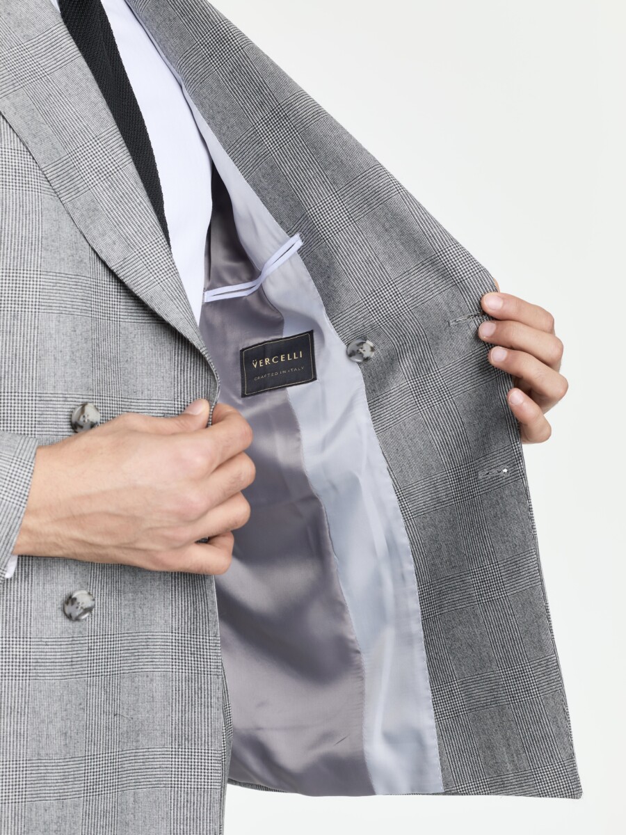 Siyah Ekoseli Vercelli Kruvaze Takım Elbise